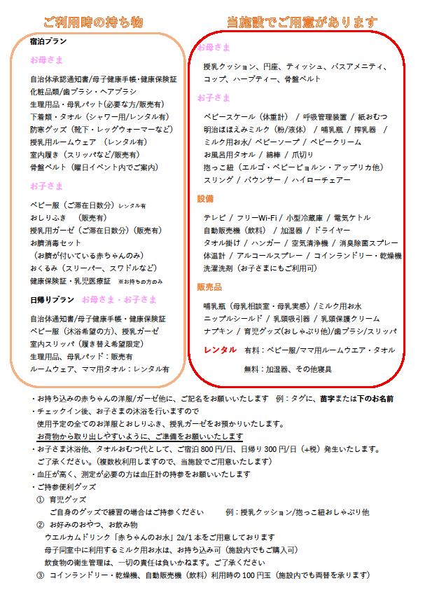 日帰りプラン:生後4ヶ月(生後120日)までのお子さまとママ